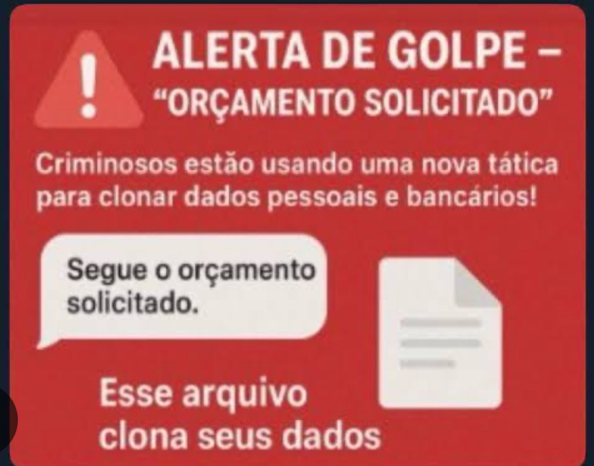 Uma nova tentativa de golpe tem circulado pelo WhatsApp, envolvendo mensagens com o título “orçamento”. Algumas delas chegam a incluir imagens com brasões oficiais, dando a impressão de autenticidade.