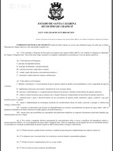 A nova legislação institui o Programa de Prevenção aos Impactos das Apostas Online (BETs) e de Combate à Ludopatia no município de Chapecó.