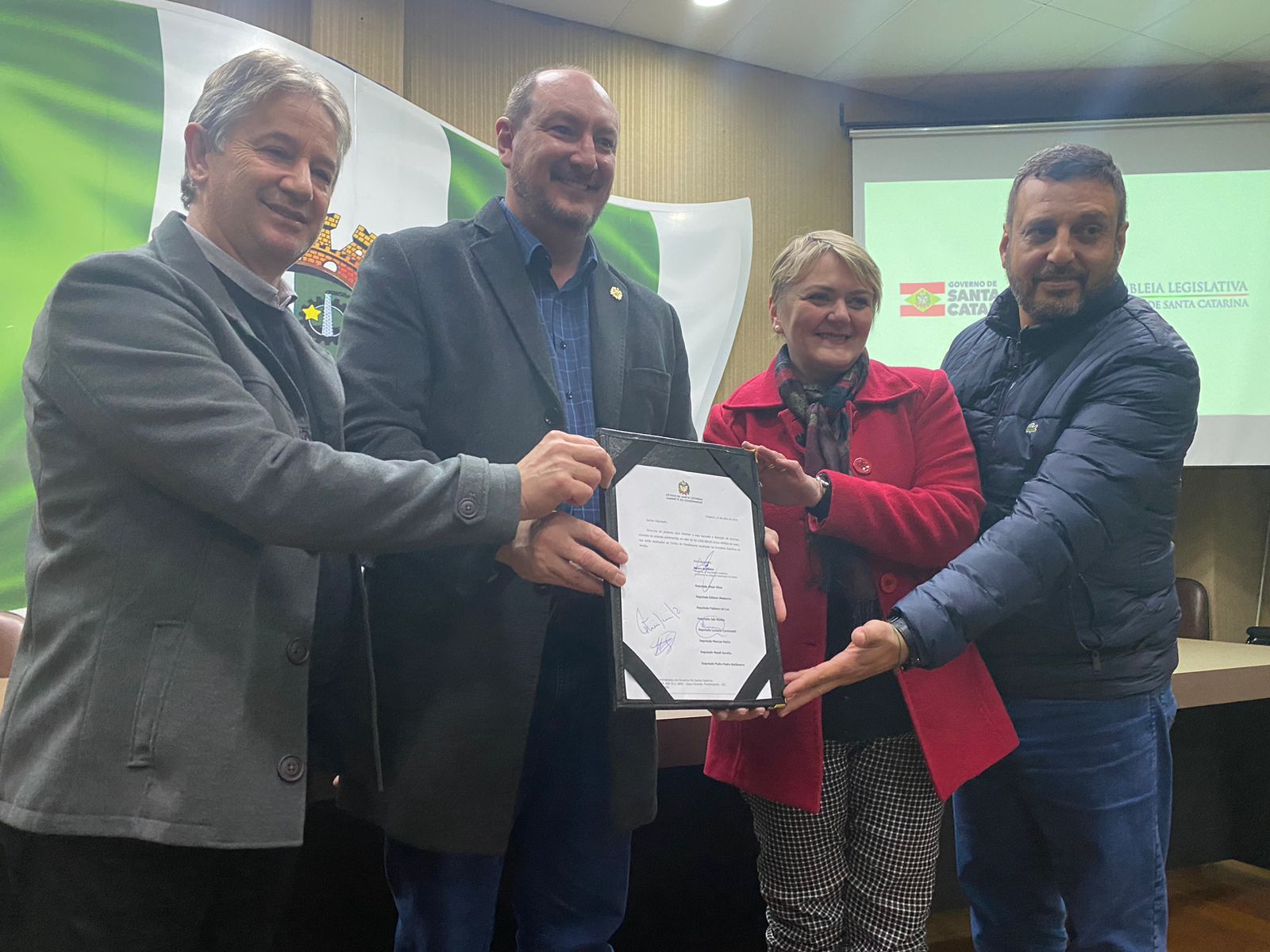 A coordenadora da bancada do Oeste, Luciane Caminatti, destacou que são nove deputados que representam a região e que contam com parte do orçamento da Alesc. Também estiveram no ato o presidente da Associação dos Municípios do Alto Irani (AMAI) e prefeito de Vargeão, Volmir Felipe, o prefeito de Chapecó, João Rodrigues, o vice-prefeito de Chapecó, Itamar Agnoletto, além de representantes das modalidades do paradesporto e demais autoridades.