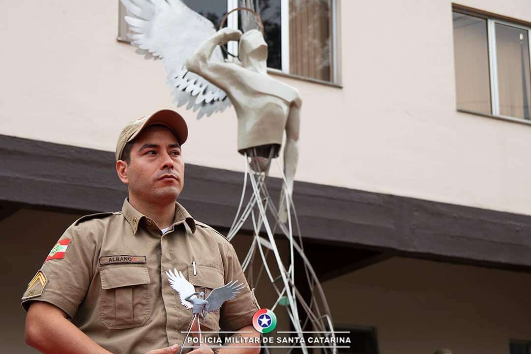 Na ocasião, além do lindo espaço que é o átrio, também foi apresentada a obra “Arcanjo”, idealizada e executada pelo Cabo PM do 2º BPM/Fron e também artista plástico, Alex Hestefan Albano, que se dedicou em período integral e exclusivo para a produção do monumento.