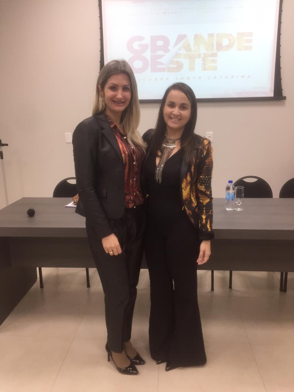 A presidente Convention & Visitor Bureau de Chapecó e região, Branca Rubas, foi empossada como Tesoureira Adjunta da nova diretoria do Conselho Regional de Turismo do Grande Oeste (Conturoeste), na última quinta-feira, dia 21. Pela primeira vez, deste a instalação em 2010, a coordenação está com um município da região da Associação dos Municípios do Alto Irani – AMAI. Na foto, Branca está ao lado da presidente do Conselho Elisiane Silveira.