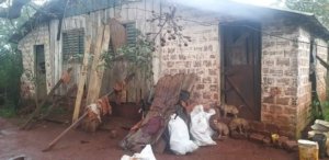 Dona Joana que vivia apenas com a companhia dos fiéis cachorros num casebre humilde, agora assistiu a comunidade de Palmeira das Missões e Brigada Militar a construir sua casa nova.