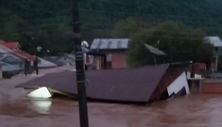 Trânsito interrompido em diversos pontos da área urbana e rural, casas e muros danificados, queda de árvore, alagamento e rede pluvial em colapso.