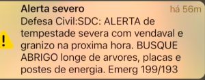 Defesa Civil aciona alerta de prevenção de temporais para telefones do código 49