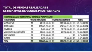 O destaque ficou para o setor imobiliário, que vendeu R$ 252,6 milhões e prospectou outros R$ 454,7 milhões.