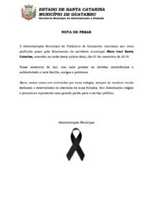 A prefeitura de Guatambu emite uma nota de luto oficial no município.