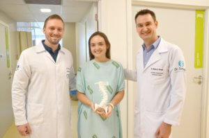 “Esse caso precisava passar por cirurgia, pois se tratava de dupla curva grave com deformidade progressiva, que aumentava conforme o crescimento da paciente. A técnica da impressão em 3D permite um planejamento pré-operatório mais fidedigno, gerando mais segurança durante a cirurgia. A reabilitação física iniciou de forma rápida, pois já no segundo dia pós-operatório a paciente conseguiu caminhar com pouca dor”, afirma Dr. Bondan.