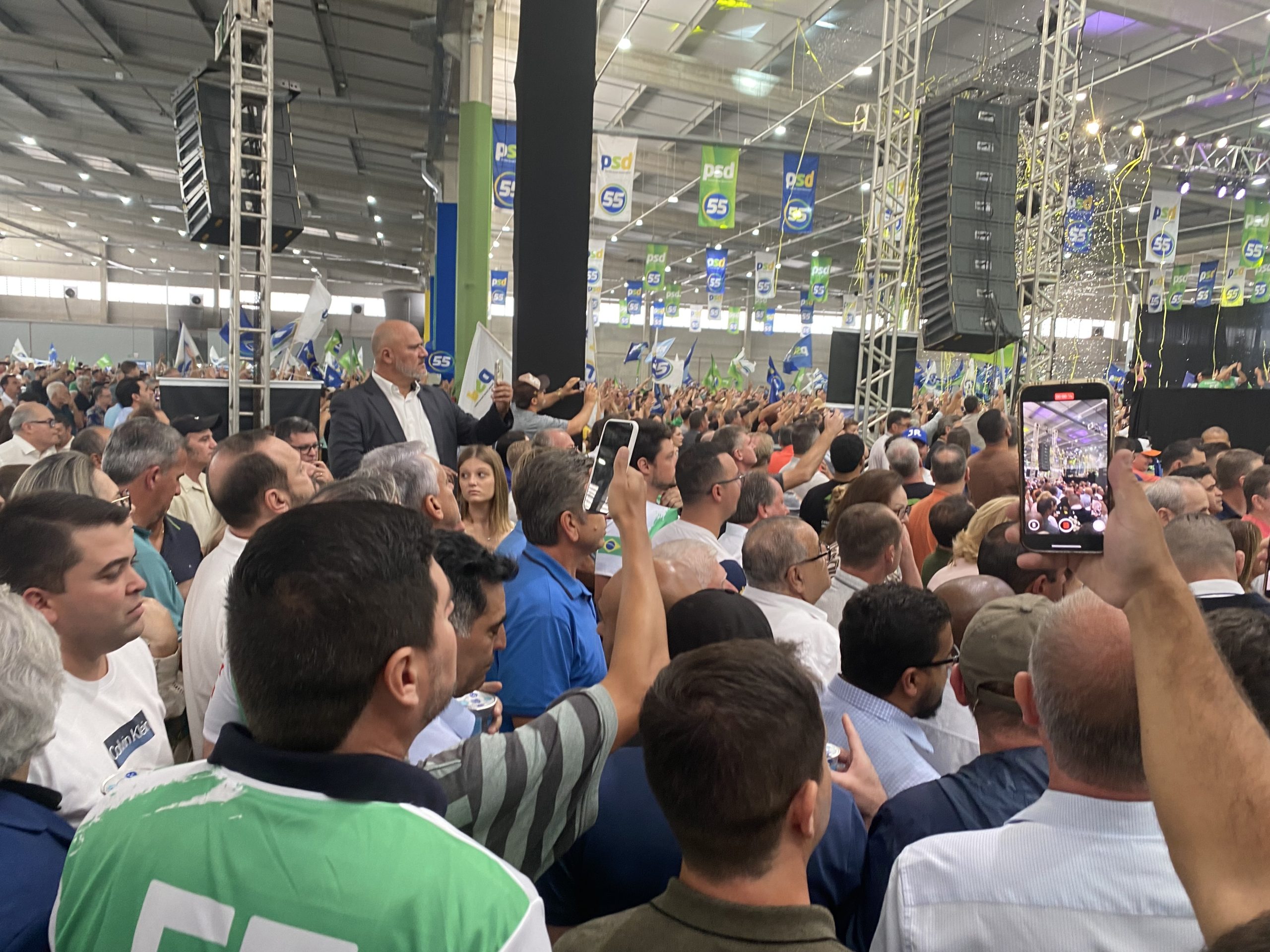 Chapecó foi palco de um evento histórico para a política de Santa Catarina neste sábado. Mais de 5 mil pessoas lotaram o pavilhão da Efapi para o lançamento da pré-candidatura de João Rodrigues (PSD) ao governo do Estado. O evento contou com a presença de lideranças de diversos partidos, como MDB, PP, Novo, União Brasil e Democracia Cristã. Uma das personalidades que subiu ao palco foi o governador do Paraná, Ratinho Júnior, destacando a ampla base de apoio que o prefeito de Chapecó consegue mobilizar.
