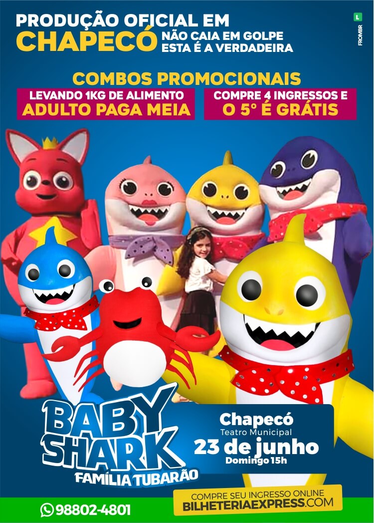 Nesta domingo dia 23 a Baby Shark vai está em Chapecó no centro de eventos.