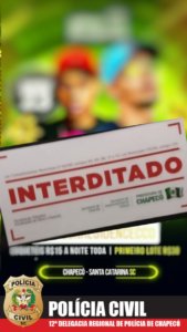 POLÍCIA CIVIL, EM AÇÃO CONJUNTA COM PM, BM, E PREFEITURA MUNICIPAL DE CHAPECÓ, INTERDITA FESTA CLANDESTINA.