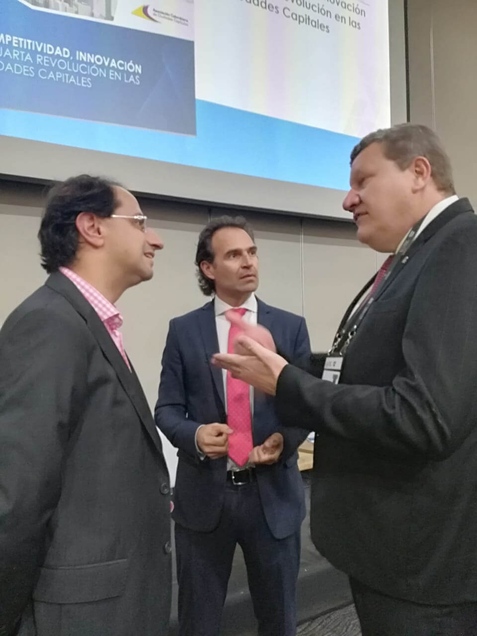 Durante esse primeiro dia, Buligon também visitou os expositores mundiais que apresentam tecnologias para a digitalização das prefeituras, recebeu um convite para participar da Festa das Flores, na comunidade de Santa Helena, e se encontrou com o Embaixador do Brasil na Colômbia, Júlio Biteli.