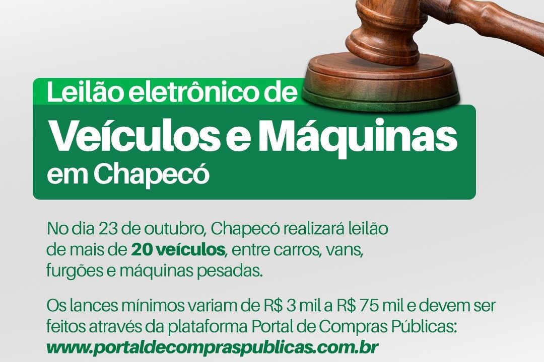 Está encerrando o prazo para a fase de ofertas do leilão de veículos e bens móveis inservíveis de propriedade do Município de Chapecó.