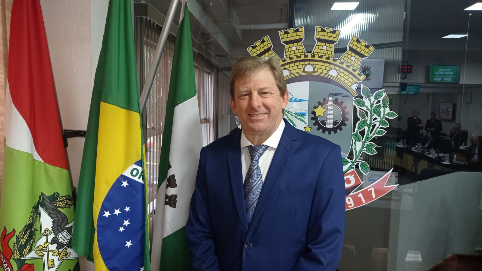 O vice-prefeito de Chapecó, Valmor Scolari e o secretário de Agricultura e Pesca, Mauro Zandavalli, receberam na Prefeitura de Chapecó, nesta terça-feira (18), o diretor da Câmara de Comércio Argentina/Brasil de São Paulo, Gonzalo Sanchez.