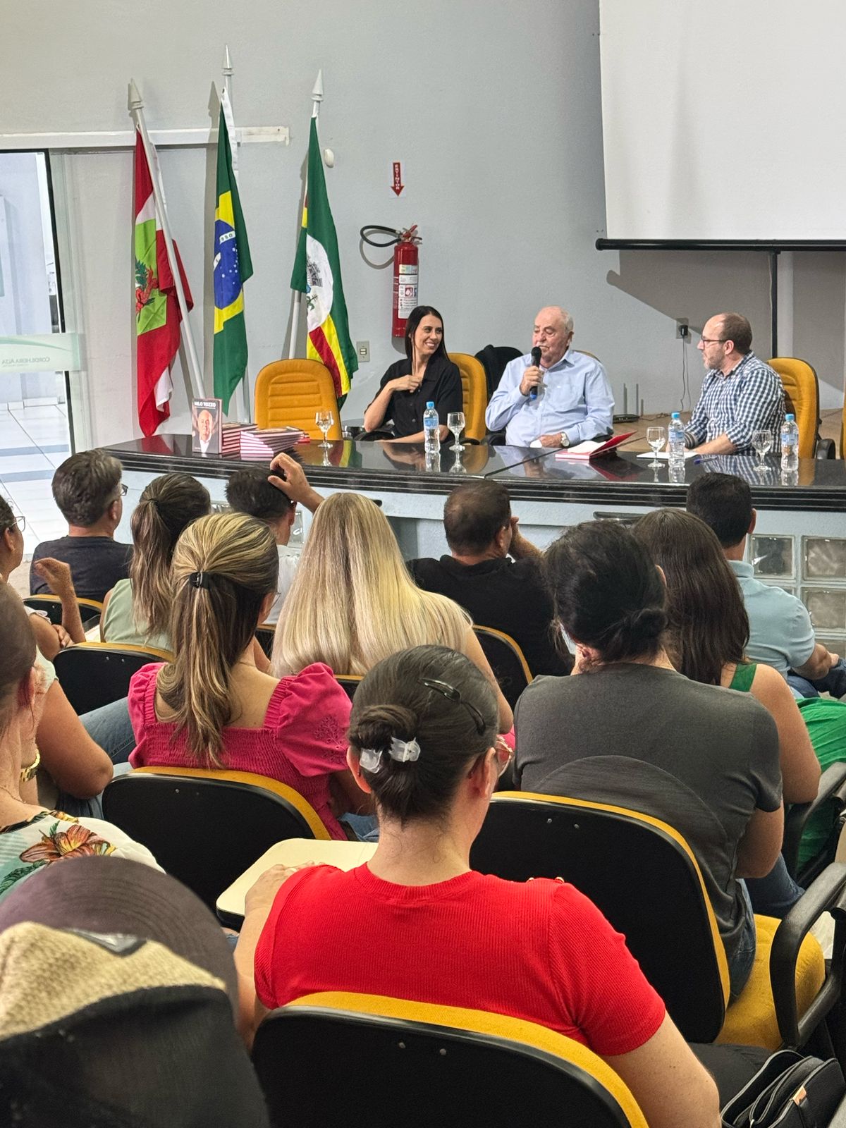 A conversa abordou a obra “Nilo Tozzo – Uma vida de trabalho. O trabalho de uma vida”, destacando a trajetória dedicada ao município e ao seu crescimento. O empresário também compartilhou histórias sobre a emancipação política da cidade e os desafios enfrentados para que Cordilheira Alta alcançasse a grandeza que é hoje.