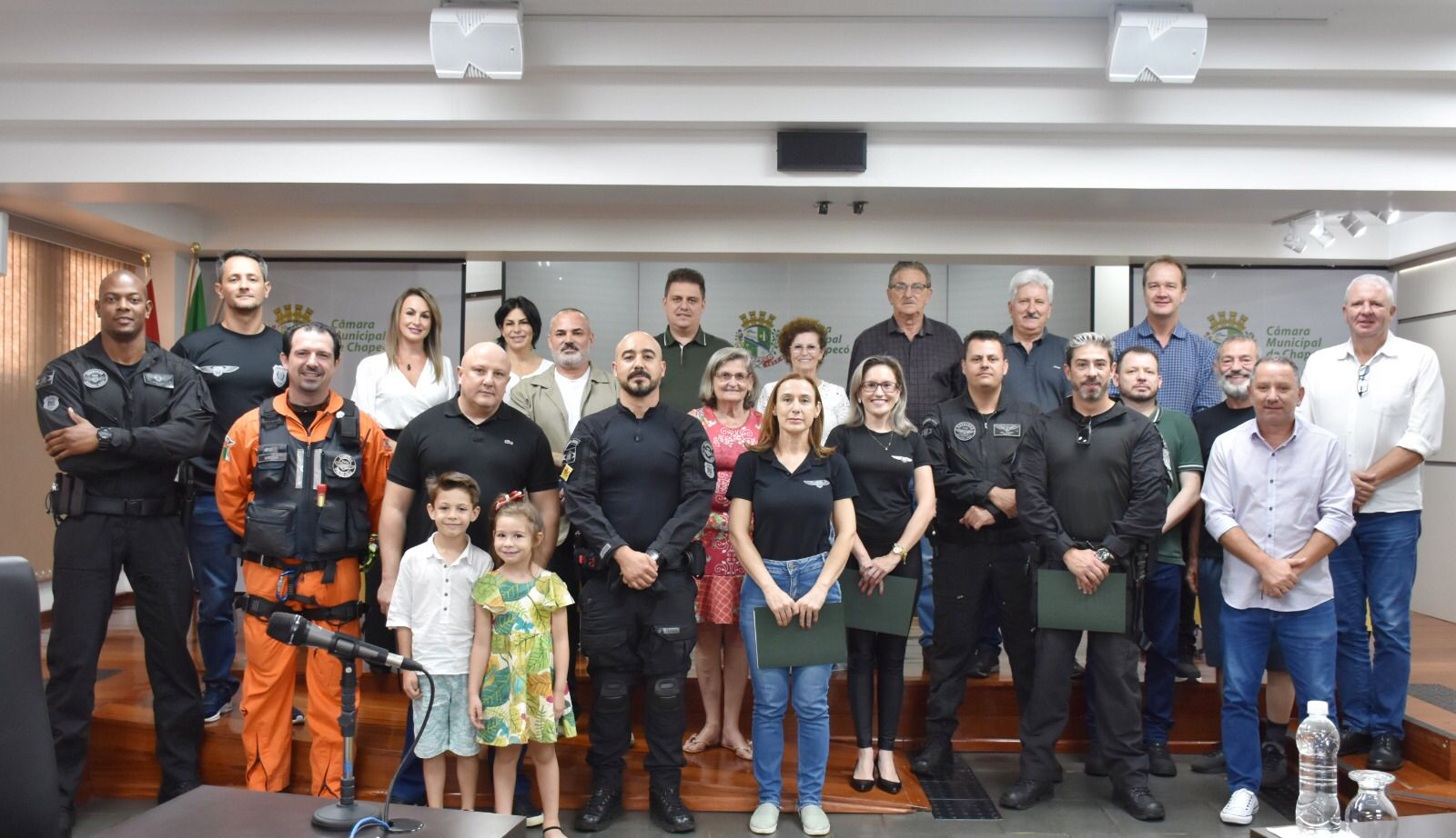 Na tarde desta sexta-feira (10), foram homenageados na Câmara Municipal de Chapecó, o Delegado coordenador do Serviço Aeropolicial de Fronteira…