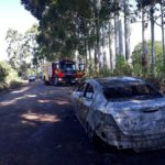 Quando a guarnição de Coronel Freitas, chegou encontrou o veículo Modelo Prisma – Marca Chevrolet, Placas QIV 8747 de Chapecó/SC -estava totalmente tomado pelas chamas.