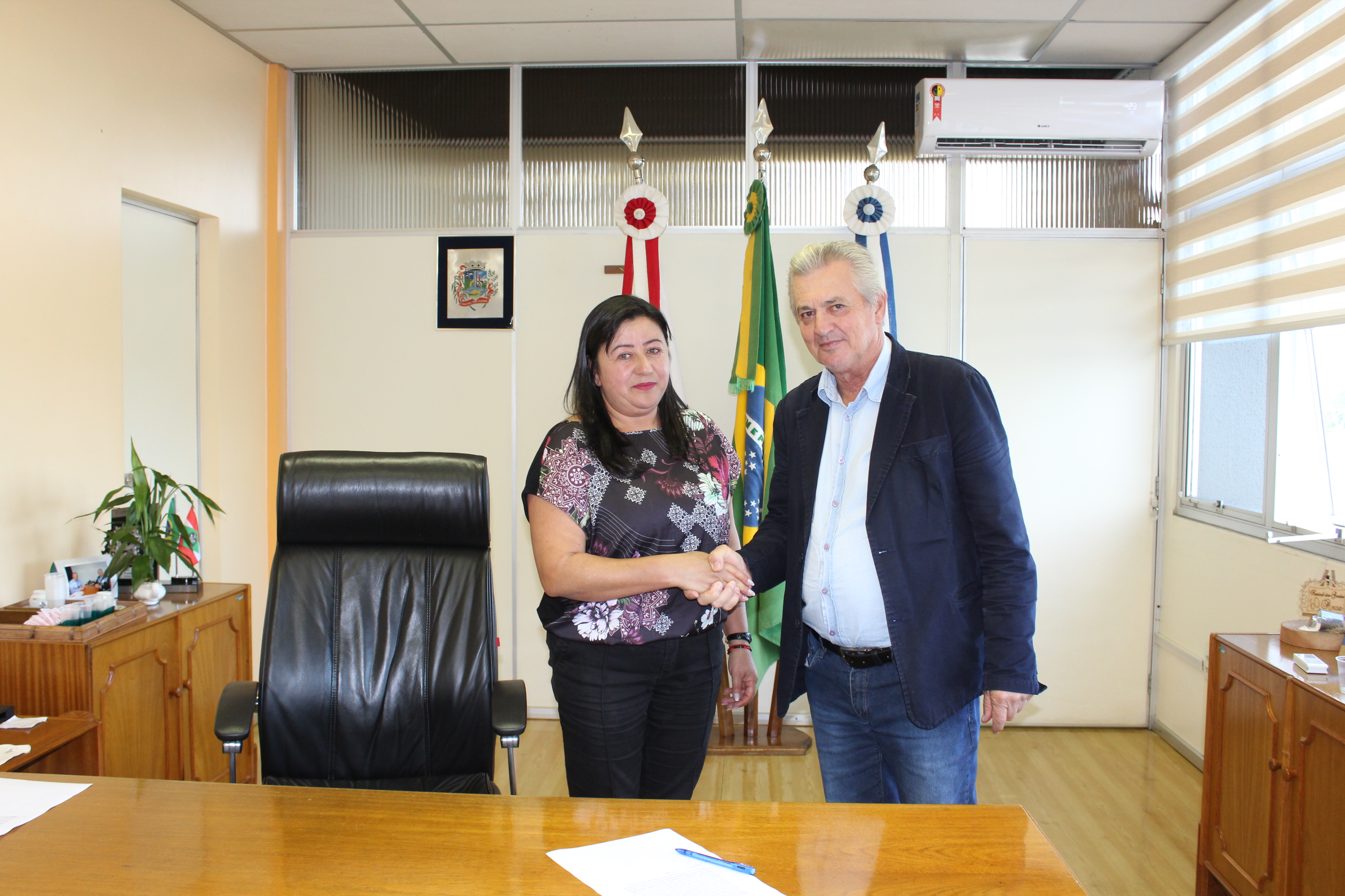 Aconteceu na tarde de ontem (19), a cerimônia de transmissão de posse entre o prefeito Gilberto Angelo Lazzari para a vice Maritânia Rosa da Silva Sandi, que assume o executivo a partir do dia 20 de março até o dia 19 de abril, por motivos de férias do titular. O evento aconteceu no gabinete e contou com a presença dos secretários, diretores, assessores e funcionários municipais.Após a saudação inicial, o prefeito Gilberto fez uso da palavra resumindo algumas demandas que estão em andamento em cada secretaria e pediu para que todos continuem desenvolvendo o trabalho e auxiliando a prefeita. “Tenho certeza que a Maritânia saberá representar o município durante minha ausência. Vou descansar e voltar para conduzir da melhor maneira possível os destinos de nossa cidade”, completou.